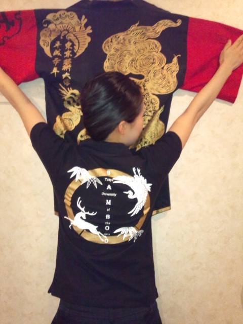 今年は初!竹科ポロシャツを作りました!! 黒にゴールドが輝いています(*’▽’*)尺八専攻自主演奏会のチラシと同じ模様で♪