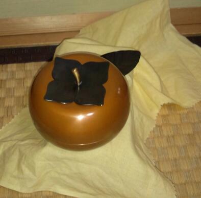 イソダさんの作品 柿の形です♪茶器で?す (お茶入れと葉の形のスプーン付き) なななんと!パリのDIOール本店でお求め頂けます! 行ってみたいなー